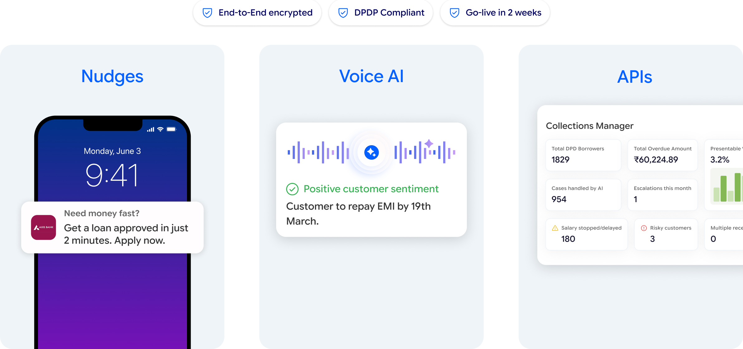 Qualify leads, convert faster, and manage collections with AI-driven conversations