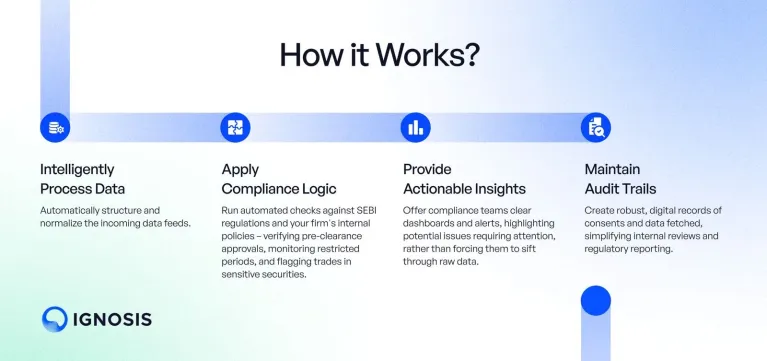 Ignosis leverages the AA infrastructure to automate the entire employee disclosure process. Instead of relying on manual submissions, Ignosis facilitates the CT043 consent request directly to the employee. Once consent is granted, Ignosis securely receives the verified investment data (holdings, transactions) directly from the source FIPs via the AA network.