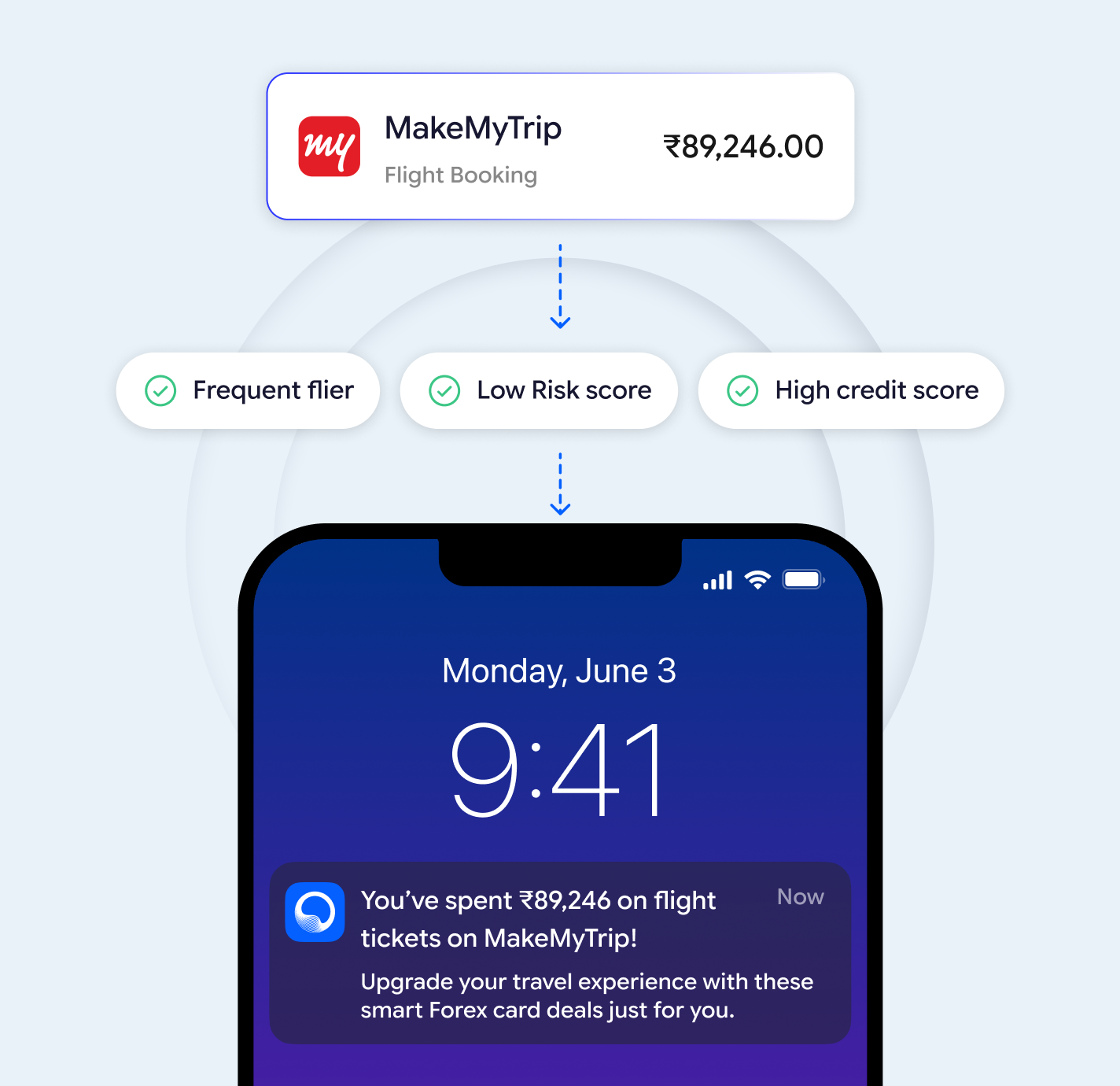 Identify high-propensity cross-sell and upsell opportunities for each customer based on real-time financial triggers and alternate data