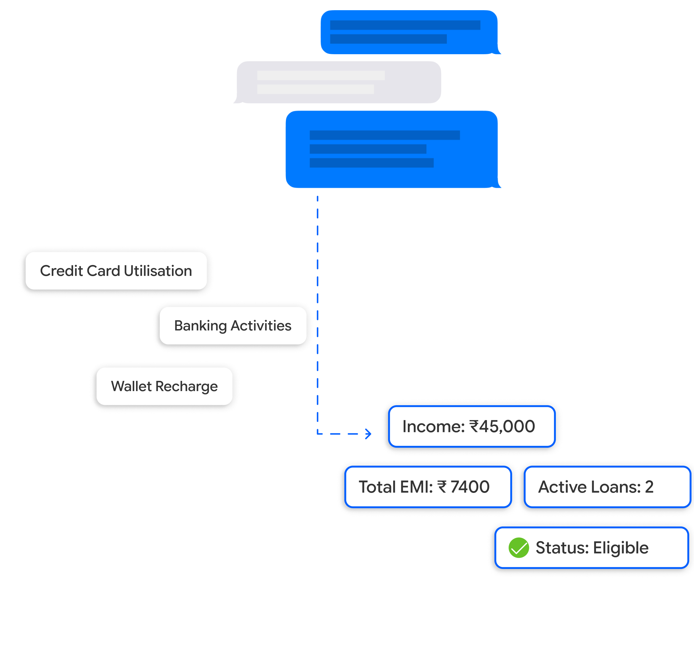 Capture a complete view of customer finances across banking, credit, loans, bills, and insurance — continuously updated from real-time SMS signals