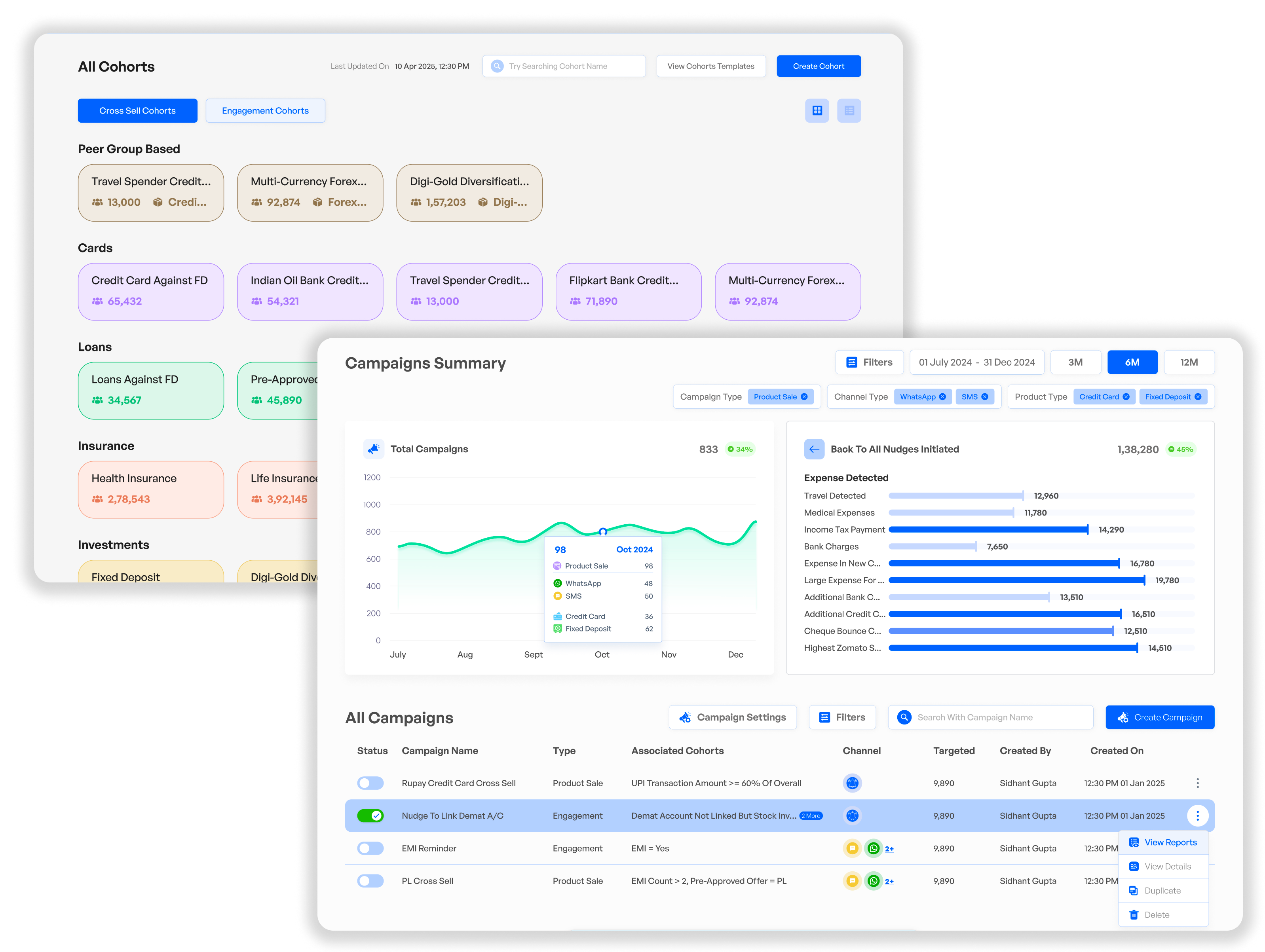 Build a 360° financial view across cards, wallets, and bills, analyse spend and behaviour patterns, and predict the next best product for each customer